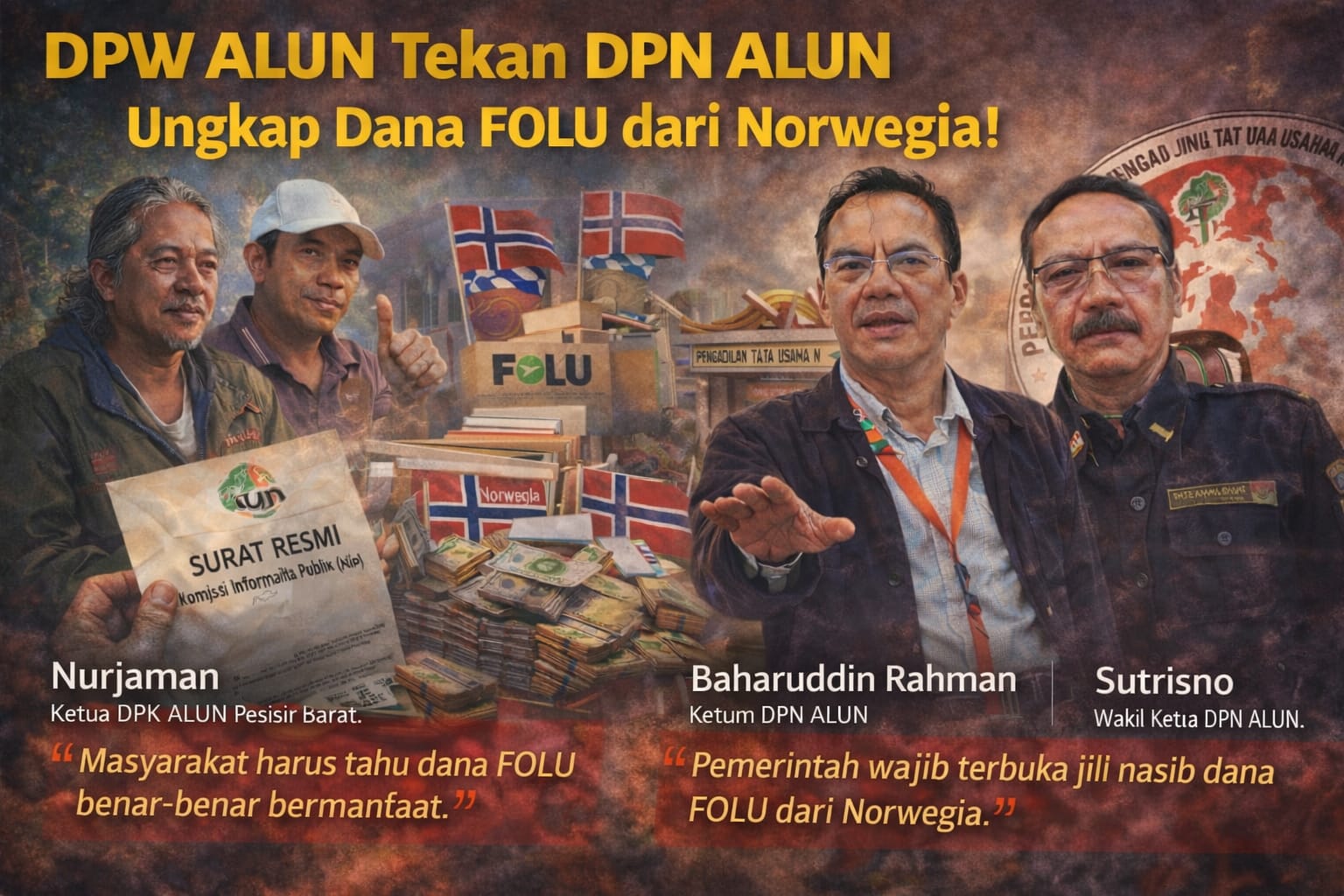 – “Kami tidak sedang menuduh. Kami hanya meminta keterbukaan. Dana FOLU, termasuk yang bersumber dari Norwegia, harus jelas peruntukannya dan dampaknya di lapangan. Rakyat berhak tahu,” tegasnya.